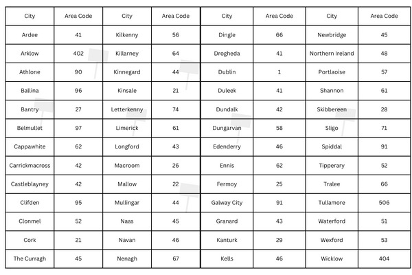 You can dial the area code of the city you want to reach. Area codes in Ireland are one to two digits in length.