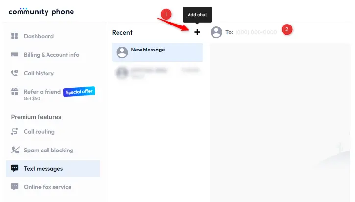 Follow these steps to send a message to any number from your Community Phone home\ business phone number: