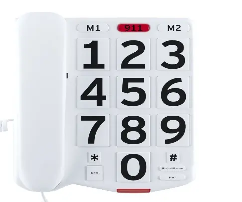 This big-button phone by Home Intuition for senior citizens offers large buttons for easy viewing. Its buttons are minimal, elegant, and have large-font, making them easy to identify quickly. This corded phone also packs an extra loud ringer to ensure you never miss out on important calls or messages.