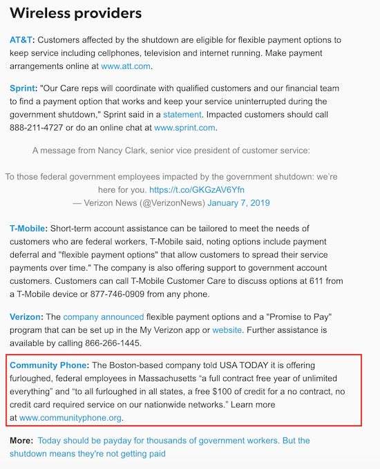 Community Phone alongside the 4 major carriers profiled by USA Today