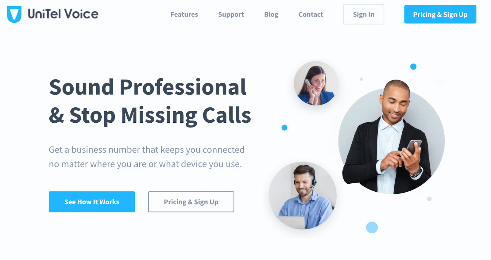 UniTel Voice is a decent virtual phone system designed for businesses. The provider lets you pair any phone with a business phone number so that your business number appears in caller ID, alongside your work email.