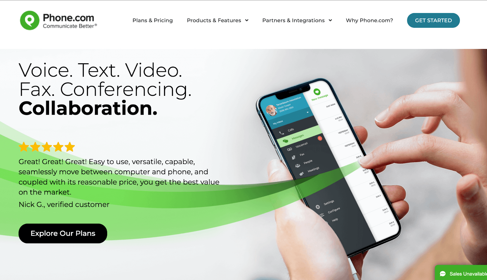 Phone.com is among the most cost-effective phone system providers on the market. Their plans are based on VoIP and require active internet. Though the internet-based infrastructure has some limitations like availability, it enables a modern feature set.