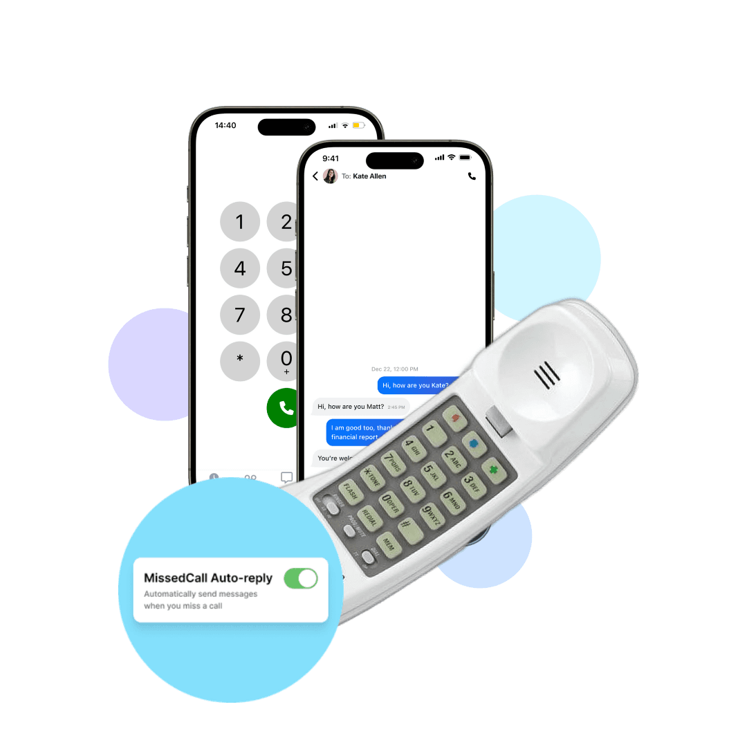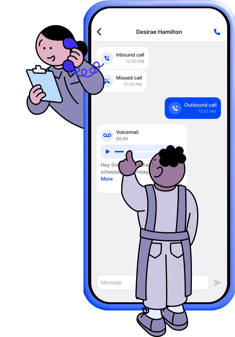 Use your shared business phone number via mobile app or web dashboard. Process accumulated calls and voicemails from anywhere, giving you back precious personal time without sacrificing business performance.